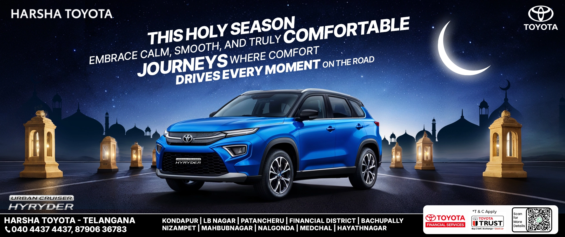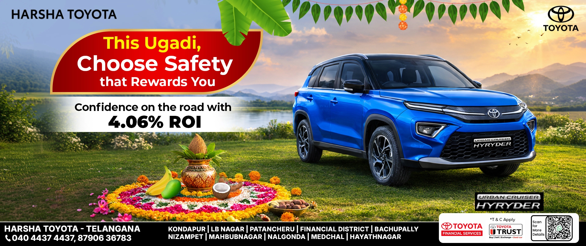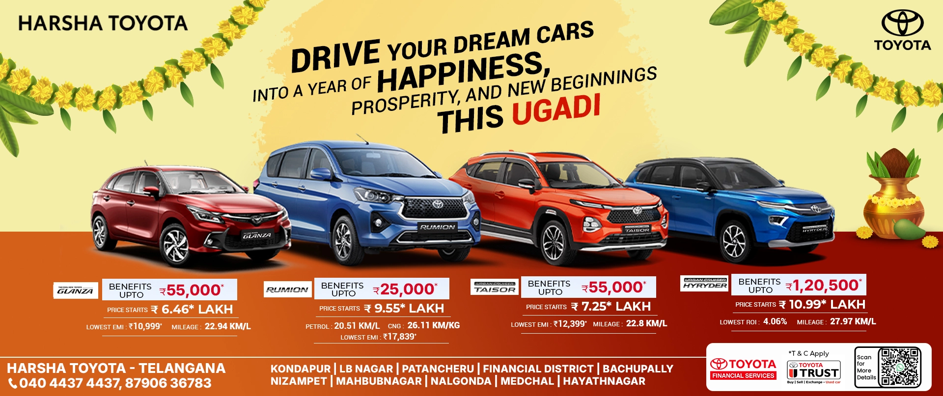 Step into a world of trust at your nearest Harsha Toyota. Find us across prime locations in the city.