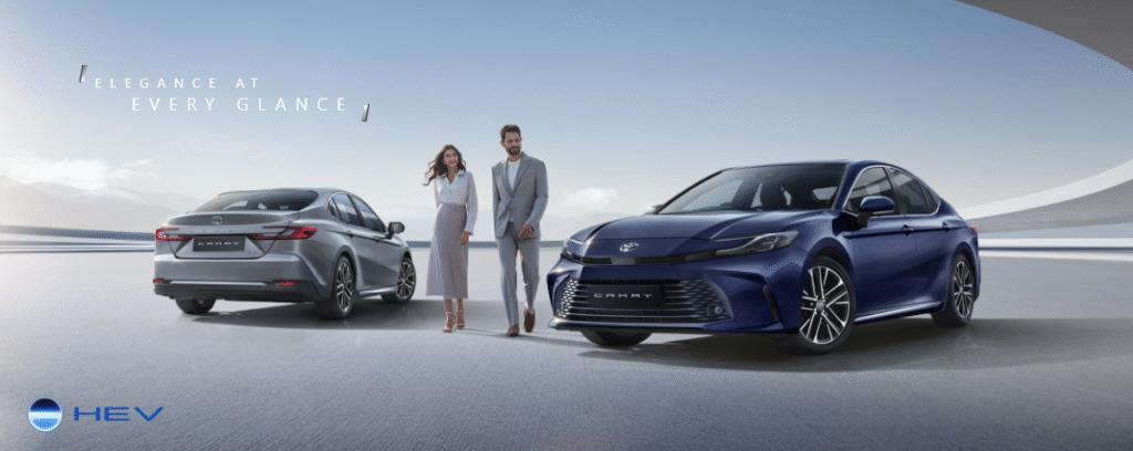 The redesigned Toyota Camry stands out with bold LED lighting, a sleek grille, and aerodynamic design. Stylish alloy wheels and a tilt-and-slide moonroof enhance its dynamic presence, offering both performance and elegance.